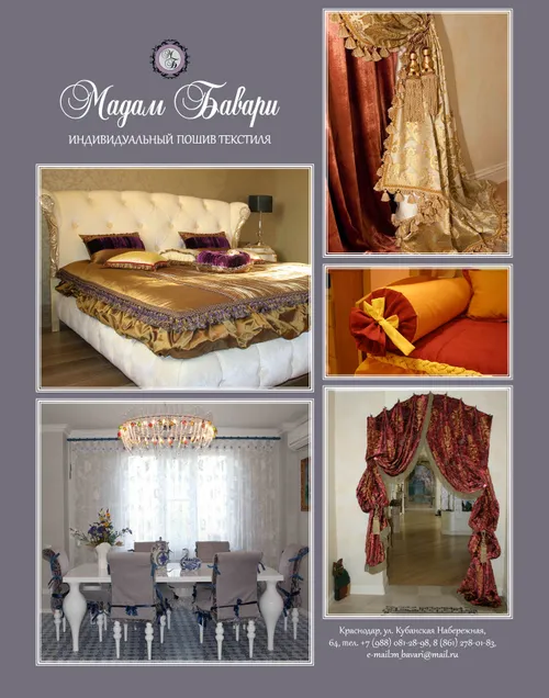 В салоне «Мадам Бавари» мне помогли выбрать идеальные шторы. Большой выбор тканей и стилей, а качество пошива на высшем уровне. Рекомендую!